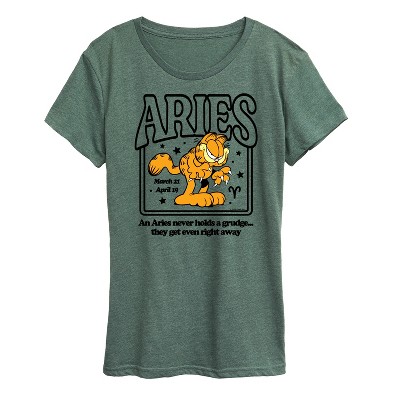 Garfield - Monday Mood - Women's Short Sleeve Graphic T-Shirt - Bring the humor and laziness of the famous orange cat to your wardrobe with Garfield graphic apparel. Featuring Garfield, Odie, and Jon, these designs celebrate the iconic comic strip and its beloved characters.