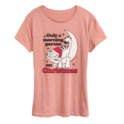 Garfield - Only A Morning Person On Christmas - Women's Racerback Tank Top - Bring the humor and laziness of the famous orange cat to your wardrobe with Garfield graphic apparel. Featuring Garfield, Odie, and Jon, these designs celebrate the iconic comic strip and its beloved characters.