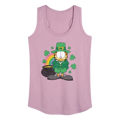 Garfield - Rainbow Shamrocks - Women's Racerback Tank Top - Bring the humor and laziness of the famous orange cat to your wardrobe with Garfield graphic apparel. Featuring Garfield, Odie, and Jon, these designs celebrate the iconic comic strip and its beloved characters.