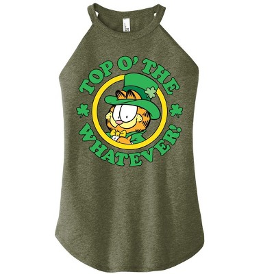 Women's Garfield Ready For Shenanigans Graphic High Neck Tank - Heather Military Green - Small