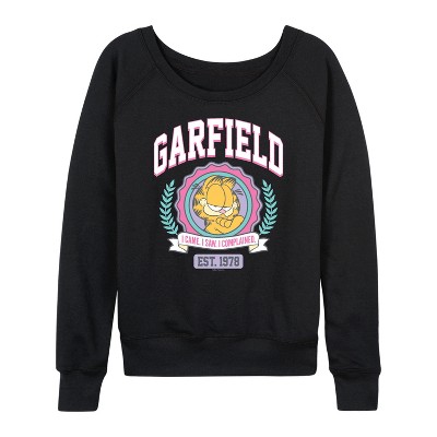Women's Garfield Take Life One Nap Lightweight French Terry Wide Neck Long Sleeve Graphic Shirt - Black - Small