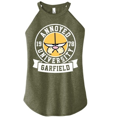 Women's Garfield Top O The Whatever Graphic High Neck Tank - Heather Military Green - Medium