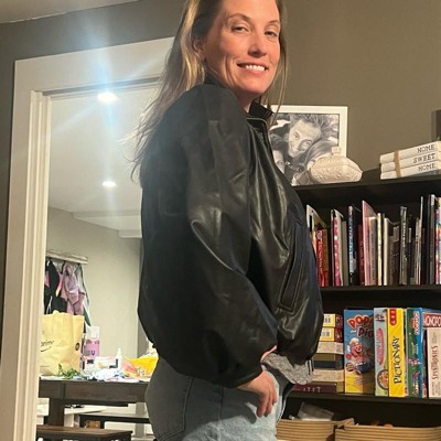 This faux leather bomber is such a vibe—trendy, chic, and super easy to style. The puff sleeves add just the right amount of drama without feeling overwhelming, and the cropped cut pairs perfectly with high-waisted jeans or skirts. Fit-wise, it runs true to size and feels really comfortable for everyday wear. But if you plan to layer it over chunky sweaters or thicker tops, I’d suggest sizing up for a little extra room. It’s lightweight yet structured, so it works beautifully for fall layering without being too heavy. Overall, it’s a statement jacket that makes any outfit instantly cooler while still being versatile enough for casual or dressed-up looks.