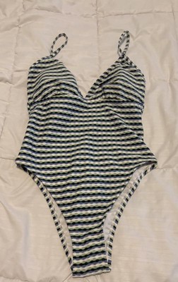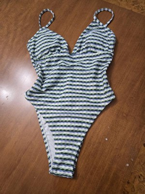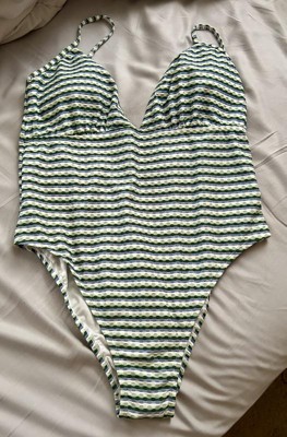 Women's Geo Jacquard High Leg Cheeky One Piece Swimsuit - Shade & Shore™ Green Multi XL is a cute bathing suit. This is revealing in the bottom area, as noted with saying cheeky in its title. If you are comfortable with that, you should love the suit.