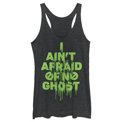 Don't worry if your shirt was slimed with ectoplasmic goo, because we're here to save the day with this awesome Juniors' Black Heather Ghostbusters Ain't Afraid Ghost Collage Racerback Tank Top! Featuring one of the most famous quotes from the iconic Ghostbusters movie with a cool design in the background, you are sure to get the attention of all the Ghostbusters fans this season! Grab this new graphic tee today and always remember who you're gonna call!