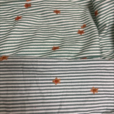 PJ’s are cute, but the adult sizes are a grayish green color. The kid sizes are a Christmas green. Designs match but not the color. Disappointed since it was supposed to be matching family pj’s.