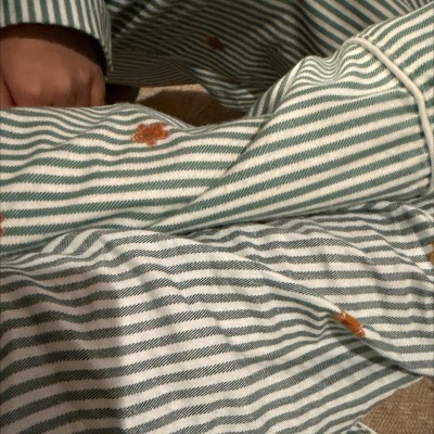I’m so disappointed and upset with this item. Not only did it arrive later than expected but it looks like somebody used it and returned. I cannot believe this is the item Target sent. I’m also in a lose/lose situation because it’s out of stock either I return my family’s entire stock matching pjs or return mine and hope they restock (which is never guaranteed). I was really excited because they’re actually quite cute. You can tell by my images that the pjs that were supposed to be mine were definitely messed with.