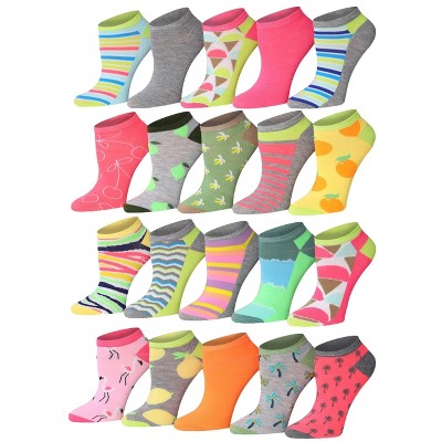 Fiesta Pop Mix Colorful No Show Socks - 20 Pairs
