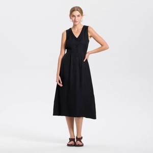 Step into effortless style with the Women's Half Button Midi Dress from Universal Thread™, a breezy essential perfect for warm-weather days. Crafted from lightweight woven fabric, this sleeveless dress features a flattering V-neckline and a classic midi length, offering a balance of casual elegance and comfort. The pull-on design makes it easy to wear, while the half-button front adds a touch of structure and charm. A convenient front pocket lends a functional detail, making this dress ideal for everything from brunch to beachside strolls.