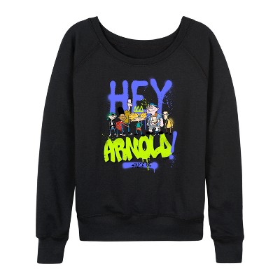 Hey Arnold! - Arnold Spray Paint 96 - Women's Lightweight French Terry Long Sleeve Shirt - Rock your style with Hey Arnold! graphic apparel. Featuring Arnold, Helga, and the gang, these designs bring the heart and humor of this beloved animated series about growing up in the big city.