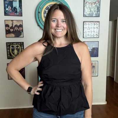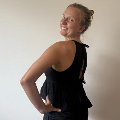 [This review was collected as part of a promotion.] This is such a chic, unique and easy to wear high neck babydoll halter top from Wild Fable. The cotton-recycled fabric is light and airy and makes the top perfect for summer. It pairs perfectly with jeans for brunch or a night out. The open back is fun and different. The fit of the top is great and I’m wearing my usual size large. My measurements are 33 inch waist and 41 inch hips. I received an incentive to write this review.