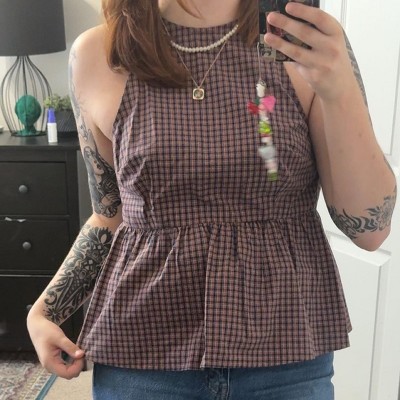 Wild Fable is definitely my go to Cute Top brand currently. They are briging out so many tops that are must haves for me. I love it, on the other hand my clothing budget had to change, but that is OK. It isn't something that I would call a halter top but the design is great no matter what you call it. I do love the babydoll style. I purcahsed the brown plaid in my usual size and the fit and look is perfect. Definitely recommend!