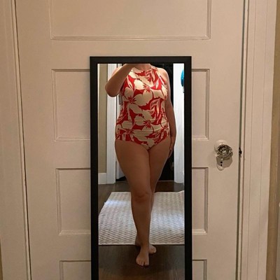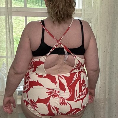 [This review was collected as part of a promotion.] This one piece swimsuit is so cute. It is perfect for any beach vacation. I am pictured here wearing a size 18 which is my true to size fit and overall this fit really nicely. The neck is high in the front so if you prefer a more V-neck style, this is not for you. The straps in the back are adjustable. This was easy to get on and off and I really like the bright vibrant colors. This would look really cute. Also paired with denim shorts as an easy cover-up. Be sure to wear your true size with this one and you’re gonna love it. I received an incentive to write this review.