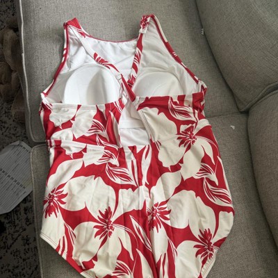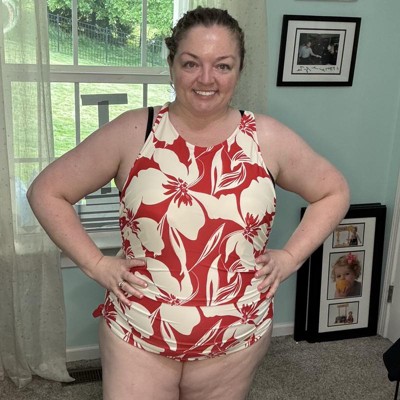 [This review was collected as part of a promotion.] This suit was very nice. I love the cream and red Hawaiian flower pattern. I am wearing a size 18 and it fit me well. I am short and have a very large chest and this didn’t job. It has some ruching on the sides and built in cups for support. I like that the material goes high on the neck for added sun protection. This suit is very well made and the quality is very nice. I highly recommend this suit. I received an incentive to write this review.