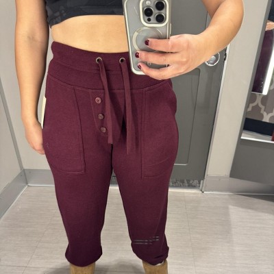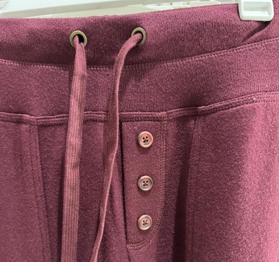 These joggers are comfortable and stylish. I was looking for something that I could wear in colder weather that wasn't heavy just comfortable, but would also feel good wearing out running errands, or going to lunch with friends. These are perfect! The sweater type material is cozy and the tapered waist with buttons gives it a more sophisticated look and allows for tucking as well as wearing loose.