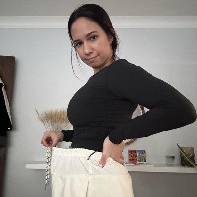 [This review was collected as part of a promotion.] These shorts look super cute online but I honestly was not a fan of them. The top section of the shorts are see through and they run a little wide. Maybe I’ll have to size down next time. I am 5’4 and 126 pounds so I thought the small would fit but I think I’ll have to get an extra small to fit to my liking. The pockets are great and the drawstrings are a plus. I love the looks of them but I’ll probably be returning them. I received an incentive to write this review.