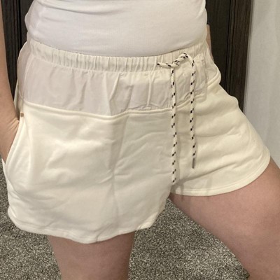 Women's High-Rise Sporty Fashion Shorts - Future Collective Cream 1X: Lightweight French Terry, Side Pocket