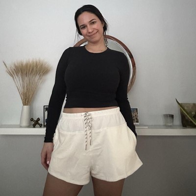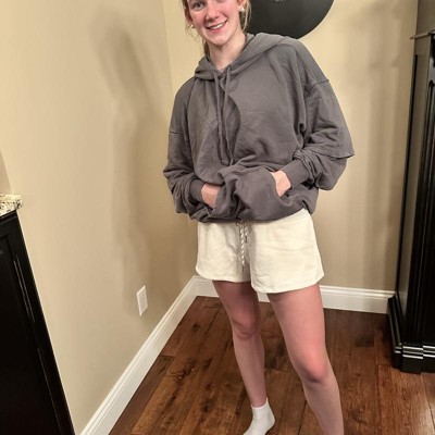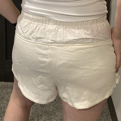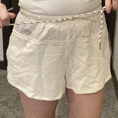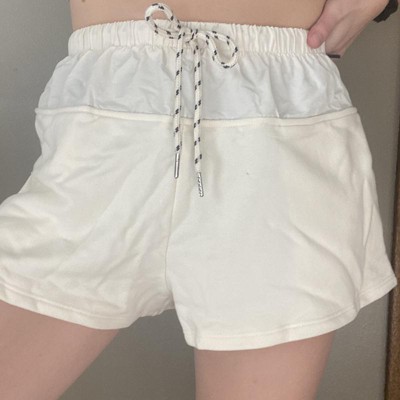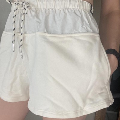 Take on your day in athletic style wearing these High-Rise Sporty Fashion Shorts from Future Collective™. These cream-hue shorts are made from a French terry fabric blend of cotton, recycled polyester and recycled cotton. Designed with a high-rise cut, they feature a front drawstring for snug, flexible wear, while the side pockets provide space to store your on-the-go essentials.
