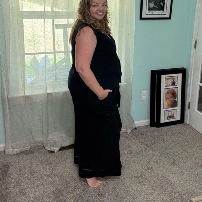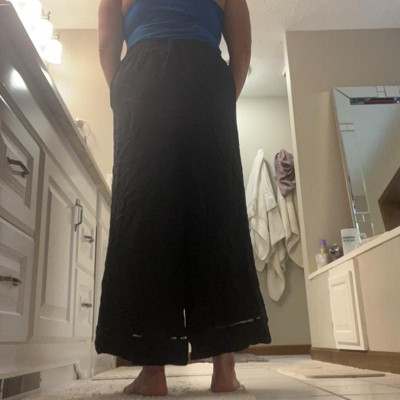 [This review was collected as part of a promotion.] I am wearing a size extra extra large in these high-rise wide legged crop Palazzo pants by Ava and Viv. There is an elastic waste with a tie band that allows you to make it tight as necessary. I really liked the detail by the bottom of the pants . The cut outs were super cute. These were very floaty and extra comfortable. They come in two different colors, black and olive green. I am in between sizes between 10 and 14 depending on the pants and these fit me great since I could tie the waist. I received an incentive to write this review.