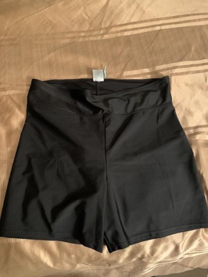 Women's High Waist 5" Swim Bike Shorts - Shade & Shore™ Black XS: Solid Tricot, Inside Pocket, Pull-On Style