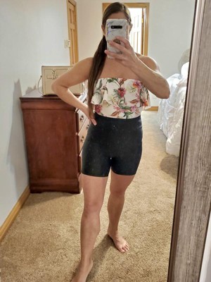 I love the idea of swim bike shorts in situations where you don't want too much showing or even for use in a hot tub which is probably what I will use them for. They are comfortable and the perfect length. They fit nicely over a bathing suit as well if you want to use it as a bottom cover up. I do wish this was a little more fitted around the stomach to flatten that area a bit but they still look and feel great