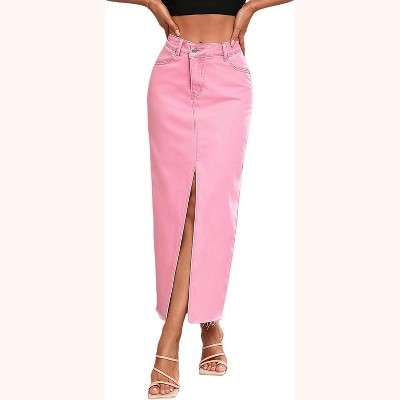 - 【Stylish Design】Featuring a High-waisted A line design, Front split, Hem Raw Frayed, our maxi denim skirt accentuates your body proportions, making you look taller and thinner. The pockets are perfect for storing your essentials