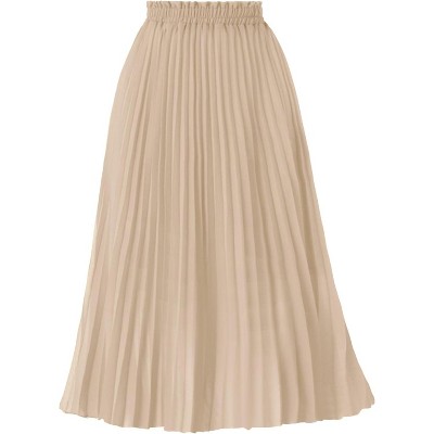 LEVEN SIXTEEN Women's High Waist Pleated A-Line Midi Skirt - Swing Flare Design Beige Beige Small