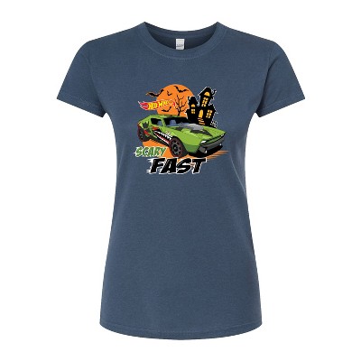 Hot Wheels - Halloween - Scary Fast - Women's Short Sleeve Graphic T-Shirt - Speed into bold style with Hot Wheels graphic apparel, featuring high-octane designs that showcase legendary cars like the Twin Mill, Bone Shaker, and other fan favorites. Each piece captures the adrenaline-pumping excitement of epic tracks, jaw-dropping stunts, and non-stop racing action. Perfect for fans of all ages who grew up launching cars off orange tracks and collecting miniature speed machines, this collection brings the thrill of Hot Wheels to your everyday look with energy, nostalgia, and unmistakable style.