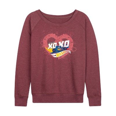 Women's Hot Wheels Valentine's Epic Lightweight French Terry Wide Neck Long Sleeve Graphic Shirt - Heather Maroon - X-Large