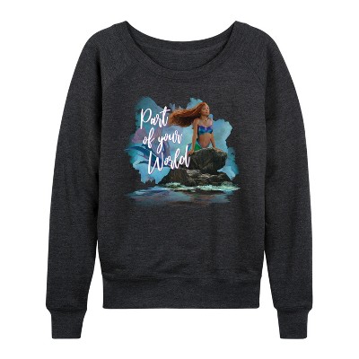 Women's IF Movie Lewis Poster Lightweight French Terry Wide Neck Long Sleeve Graphic Shirt - Heather Charcoal - Medium