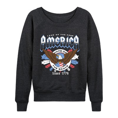 Women's Instant Message 250 Years of Liberty Flag Lightweight French Terry Wide Neck Long Sleeve Graphic Shirt - Heather Charcoal - Medium