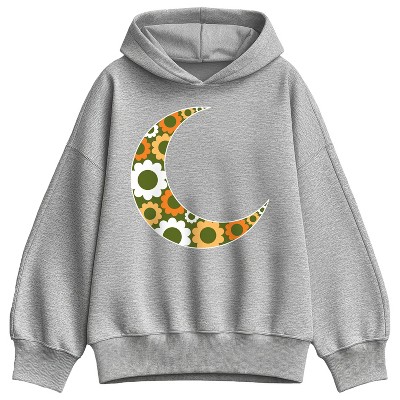 Women's Instant Message 70's Flower Moon Oversized Fleece Crew Sweatshirt - Athletic Heather - Small