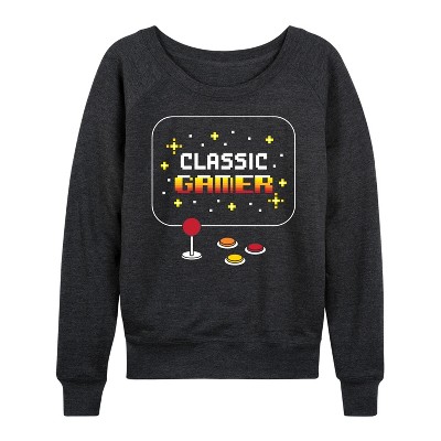 Women's Instant Message 80's Child Lightweight French Terry Wide Neck Long Sleeve Graphic Shirt - Heather Charcoal - Small