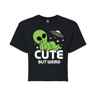 Instant Message - Alien Cute But Weird - Juniors Cropped Graphic T-shirt - Instant Message is an online specialty fashion retailer for everything from funny to inspiring printed apparel. We offer a range of garments from long sleeve and relaxed fit t-shirts, to lightweight french-terry long sleeve shirts, hoodies and graphic print pullovers. Our products feature fun and trendy graphics that are perfect for any occasion and also make great gifts.