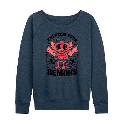 Women's Instant Message All Is Swell Sunset Lightweight French Terry Wide Neck Long Sleeve Graphic Shirt - Heather Indigo - X-Large