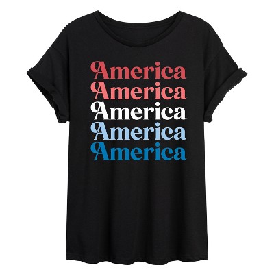 Women's Instant Message America Repeated Short Sleeve Graphic T-Shirt - Black - Large