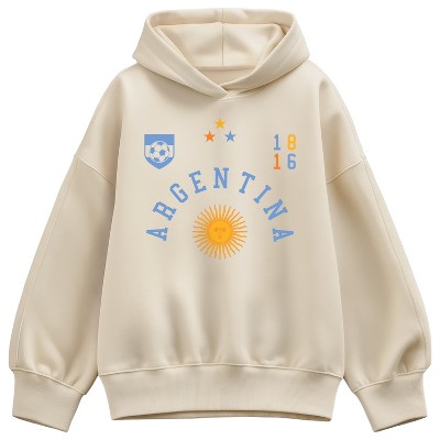 Women's Instant Message Argentina Soccer Jersey Oversized Fleece Crew Sweatshirt - Cream - 2 X-Large