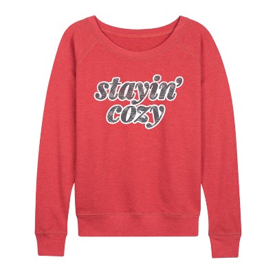 Women's Instant Message Argyle Hearts Lightweight French Terry Wide Neck Long Sleeve Graphic Shirt - Heather Charcoal - Small