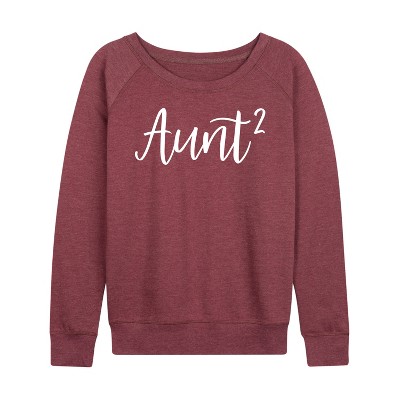 Women's Instant Message Aunt I'll Be There For You Lightweight French Terry Wide Neck Long Sleeve Graphic Shirt - Heather Maroon - X-Large