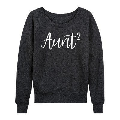 Women's Instant Message Aunt Life Lightweight French Terry Wide Neck Long Sleeve Graphic Shirt - Heather Charcoal - Medium