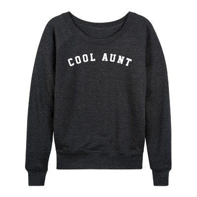 Women's Instant Message Aunt Squared Lightweight French Terry Wide Neck Long Sleeve Graphic Shirt - Heather Charcoal - Small