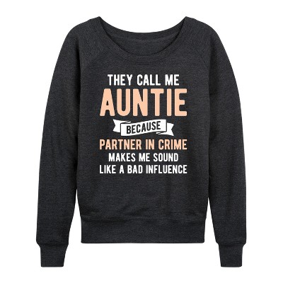 Women's Instant Message Auntie Code Lightweight French Terry Wide Neck Long Sleeve Graphic Shirt - Heather Charcoal - Large
