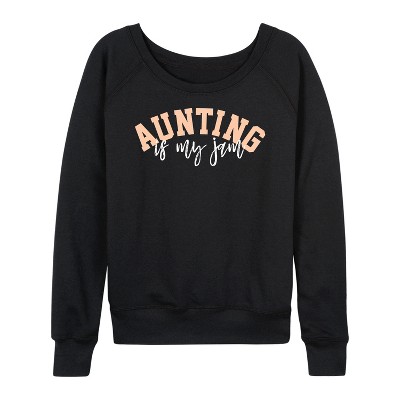Women's Instant Message Auntie-Saurus Lightweight French Terry Wide Neck Long Sleeve Graphic Shirt - Black - Small