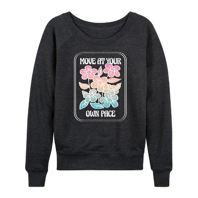 Women's Instant Message Aw Sh Tarot Lightweight French Terry Wide Neck Long Sleeve Graphic Shirt - Heather Charcoal - Small