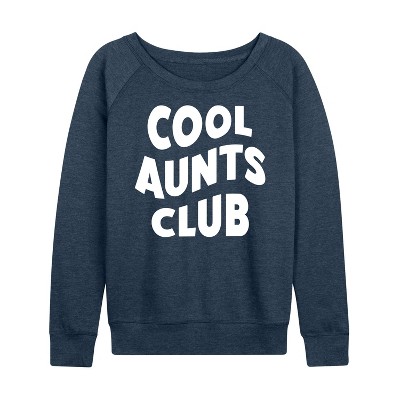 Women's Instant Message Badass Aunts Lightweight French Terry Wide Neck Long Sleeve Graphic Shirt - Heather Indigo - Medium
