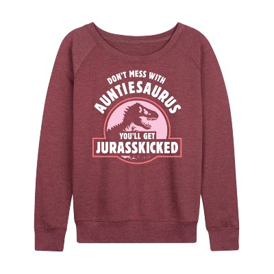 Women's Instant Message Badass Aunts Lightweight French Terry Wide Neck Long Sleeve Graphic Shirt - Heather Maroon - Small