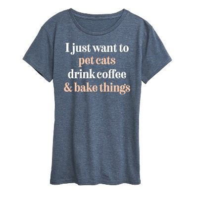 Women's Instant Message Be Kind Drink Coffee Pet Dogs Short Sleeve Graphic T-Shirt - Navy - 1X