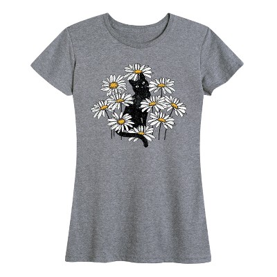 Women's Instant Message Black Cat in Sunflowers Short Sleeve Graphic T-Shirt - Heather Grey - Small