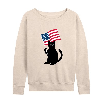 Women's Instant Message Black Cat On Books Lightweight French Terry Wide Neck Long Sleeve Graphic Shirt - Heather Maroon - Small