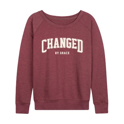Women's Instant Message Bloom With Grace Lightweight French Terry Wide Neck Long Sleeve Graphic Shirt - Heather Maroon - X-Large